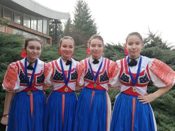 V sobotu 19.3.2022 sa uskutočnila medzinárodná tanečná súťaž v TJ Tesla Brno. Naše dievčatá Linduška B., Ivanka K., Sonička V. a Emka Š. skvele zatancovali svoj tanec Zahrajte mi túto z Detvy , čím sa nielen prezentovali, ale aj si vytancovali 1.miesto v kategórii Teens 13-15 rokov v disciplíne Lidové, folklórní tance. Ocenením je aj vyjadrenie jedného z porotcov: " Máte nejdynamičtější folklór, jaký jsem kdy videl! " K 1. miestu gratulujeme a držíme palce na Grand finále BWDG, ktoré sa uskutoční v Prahe v dňoch 29.4. - 1.5.2022.
